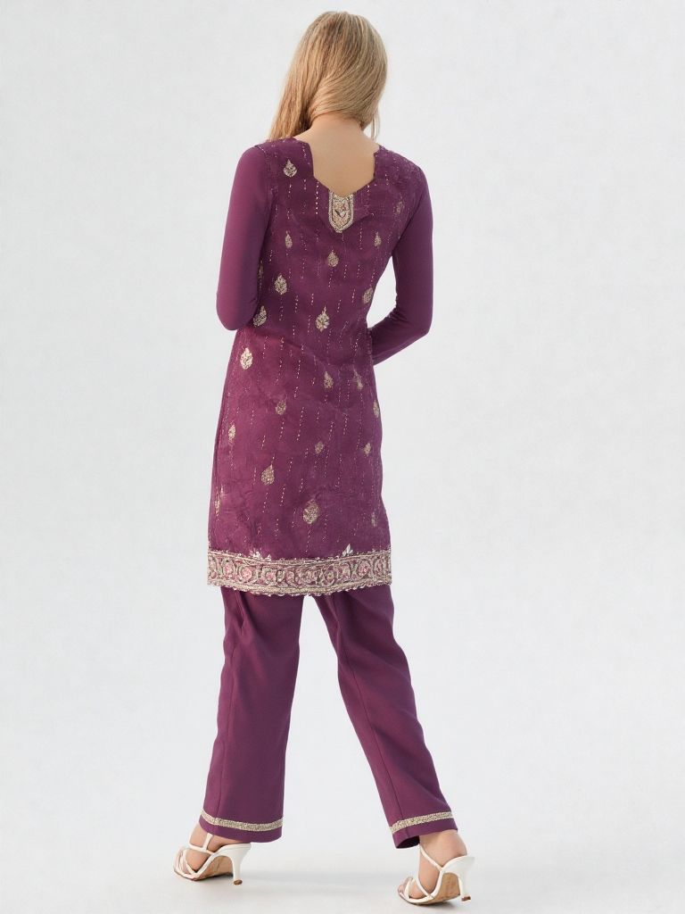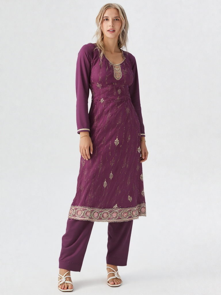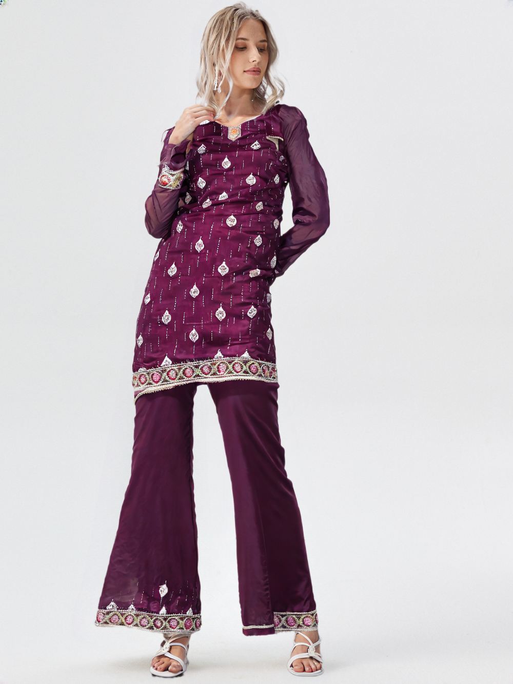 Rich Burgundy Embroidered Kurti with Flared Pants – Ethnic Glam Set