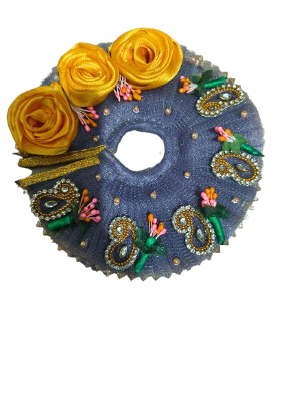 Dress up your beloved Ladoo Gopal in elegance and tradition with our Royal Midnight Bloom Dress 👑✨. This stunning piece is designed in a luxurious midnight blue net fabric, adorned with: