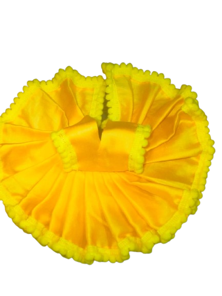 Bring home the energy of the rising sun with the "Surya Tej" dress – a stunning yellow outfit for Laddu Gopal that symbolizes purity, joy, and divine light. Made from lustrous fabric with pom-pom lace edging, this dress adds a touch of brightness to your deity’s attire.
